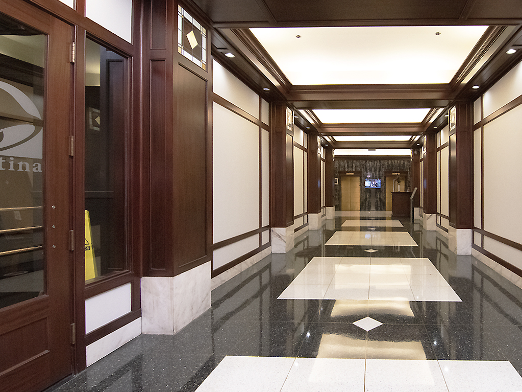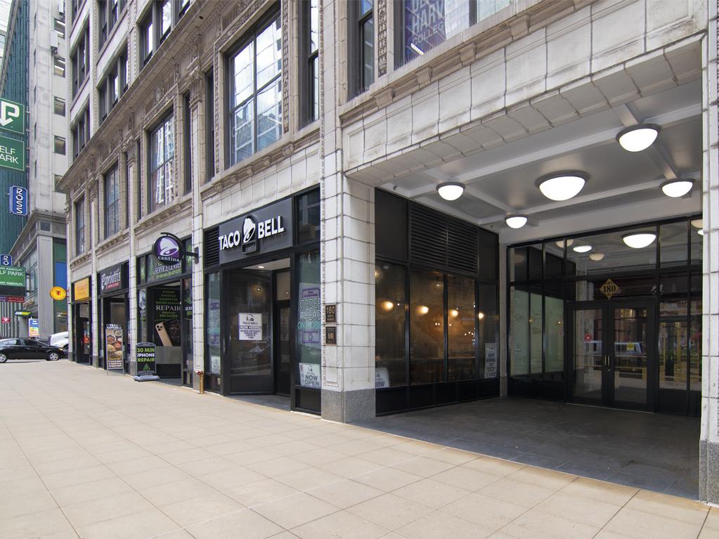 Restaurants and retail within the building include: The Halal Guys, Capriotti’s Sandwich Shop, Taco Bell Cantina, Panda Express, Dunkin’ Donuts, AirTec Service Center, Fashion Nails and Drunk Shakespeare Theater
