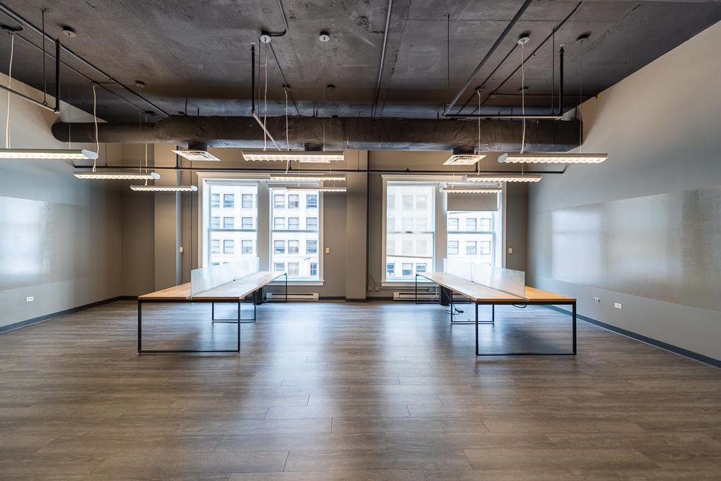 2nd generation office space features two private offices, storage and data room, and conference room with 10+ seats. Fits 9-28 people.