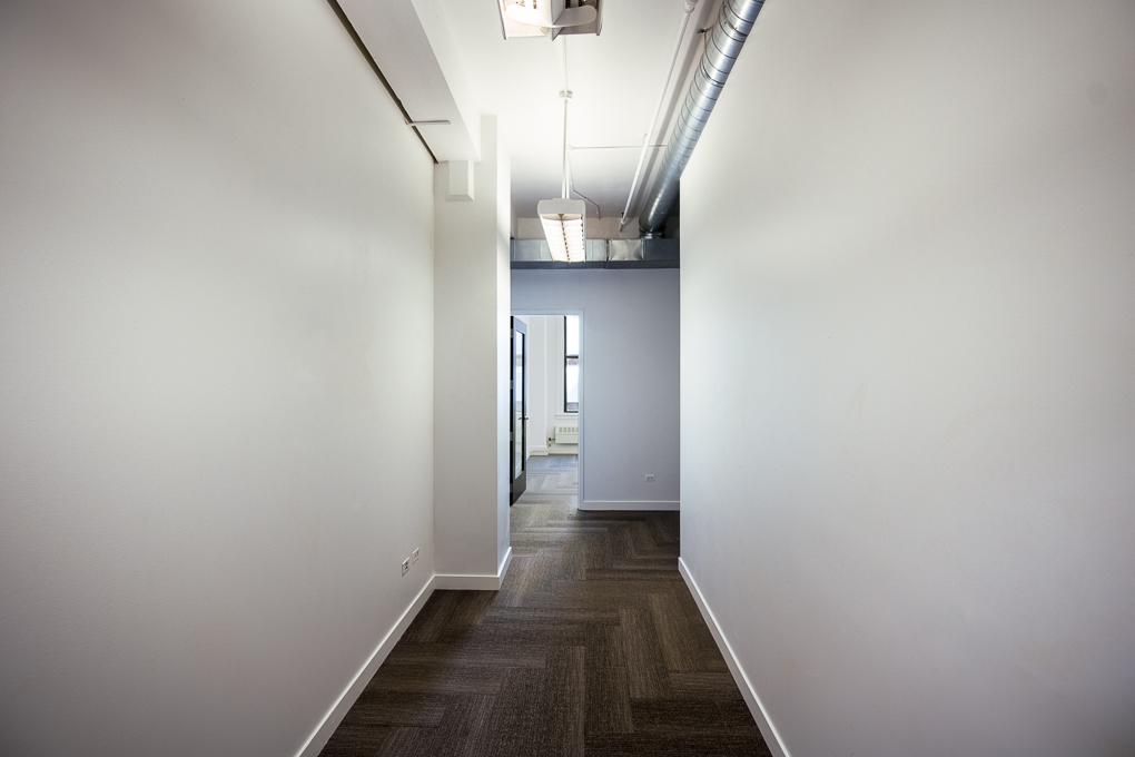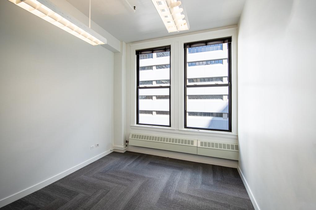 New spec space features one private office and waiting room. Fits 2-3 people.