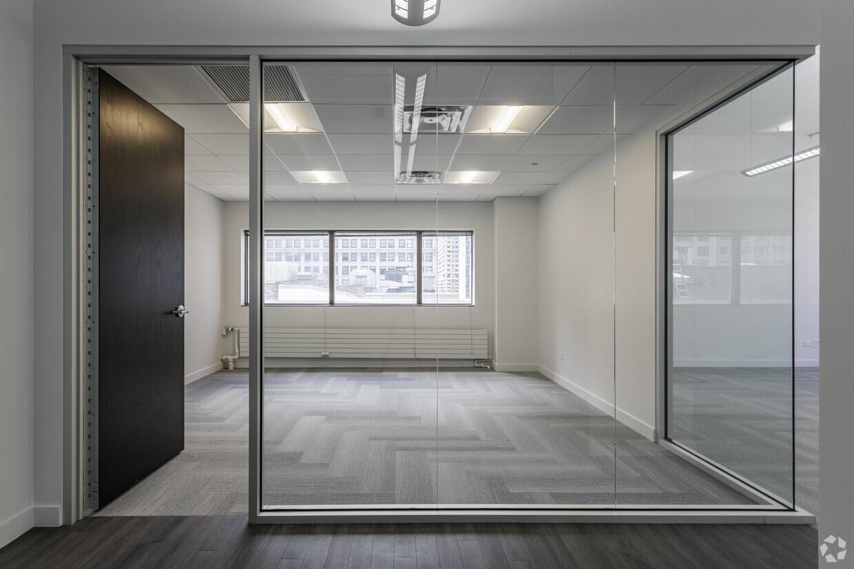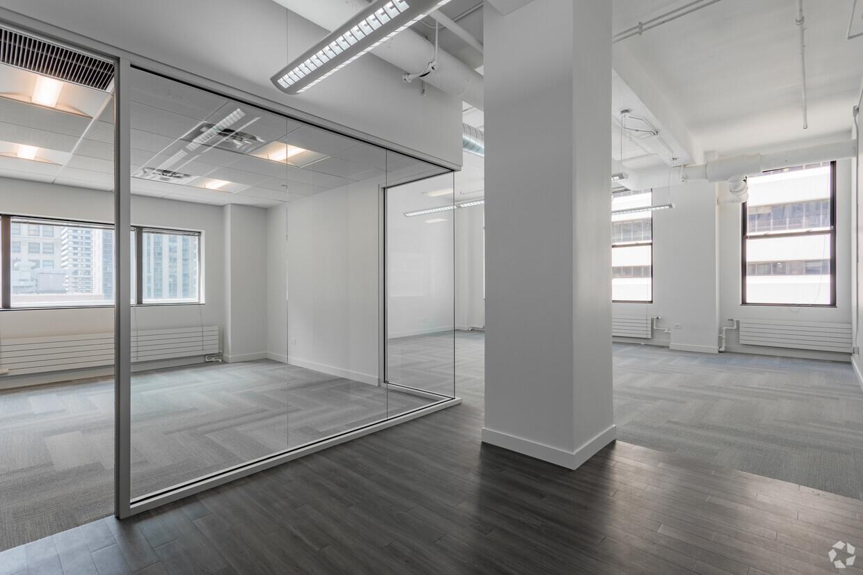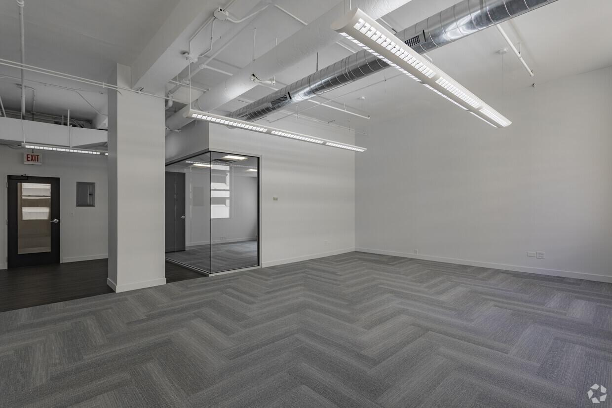 New spec space features large open work space and one private office. Fits 3-9 people.