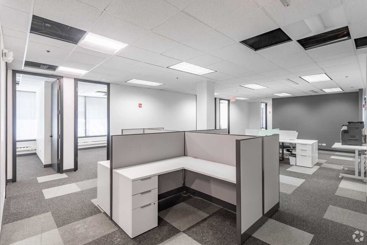 First floor space right off lobby with two entrances! Features 5 interior private window lined offices, 2 interior private offices, a conference room, kitchen IT area and open work area.
