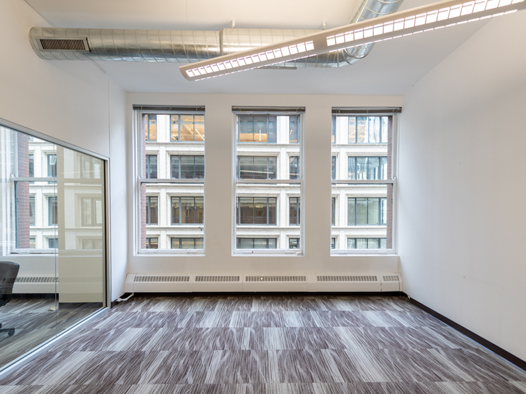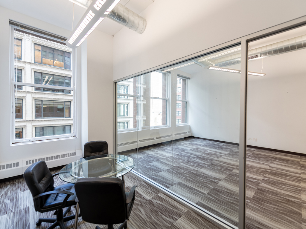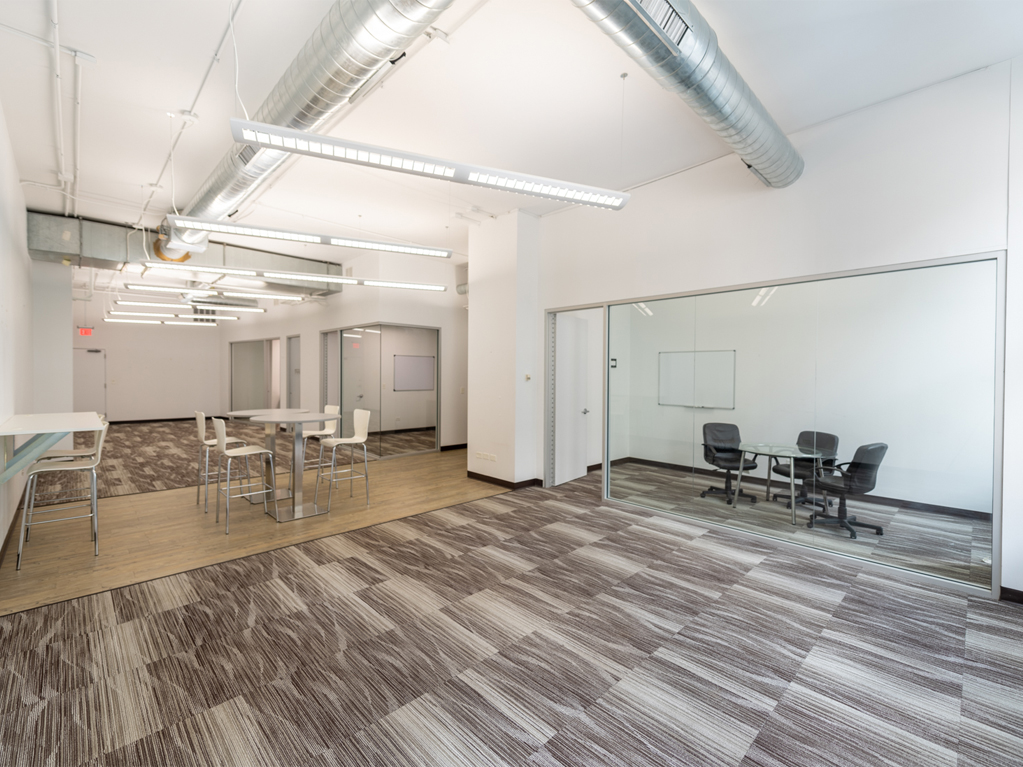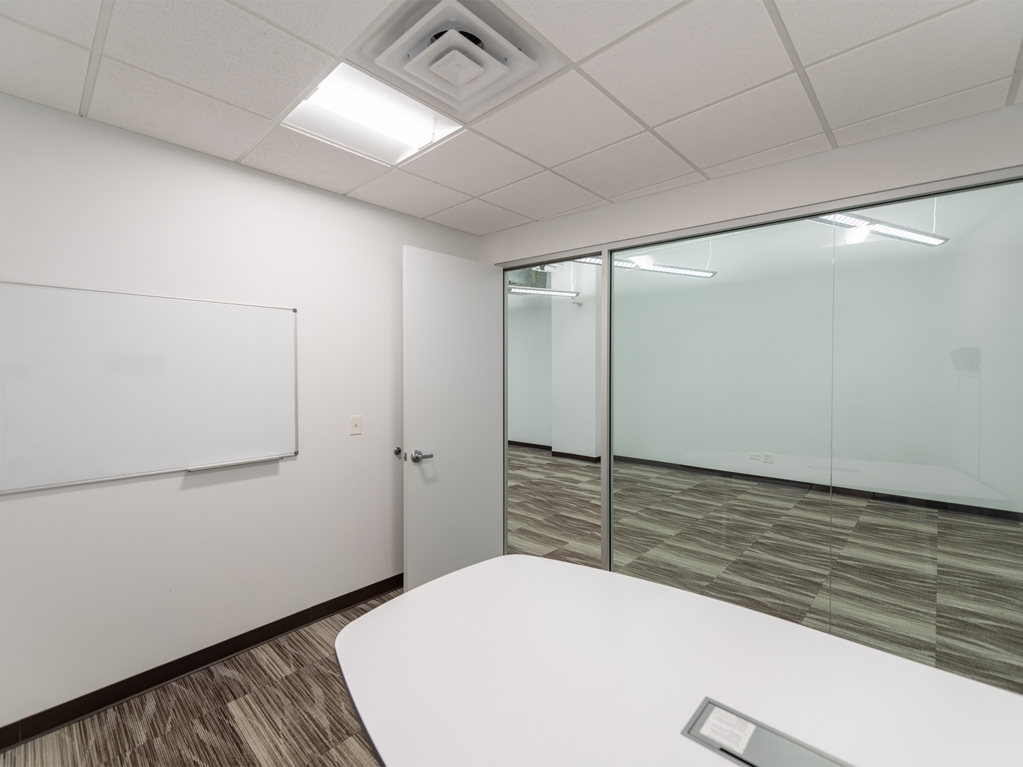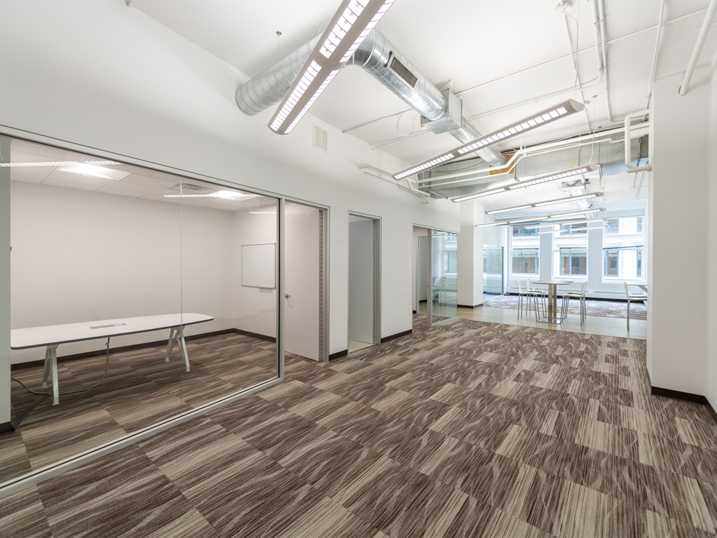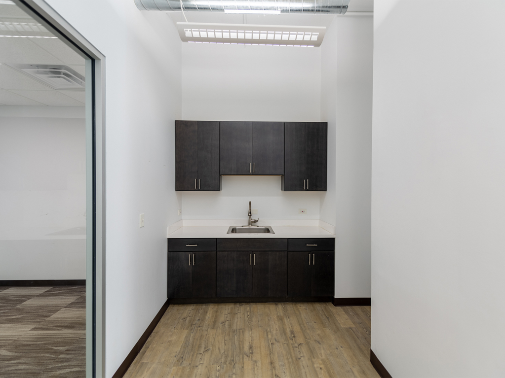 Completed Spec Space. Elevator ID. Features two private offices, one small conference room, open work space, storage and data room and kitchen with upgraded finishes. Fits 4-14 people.