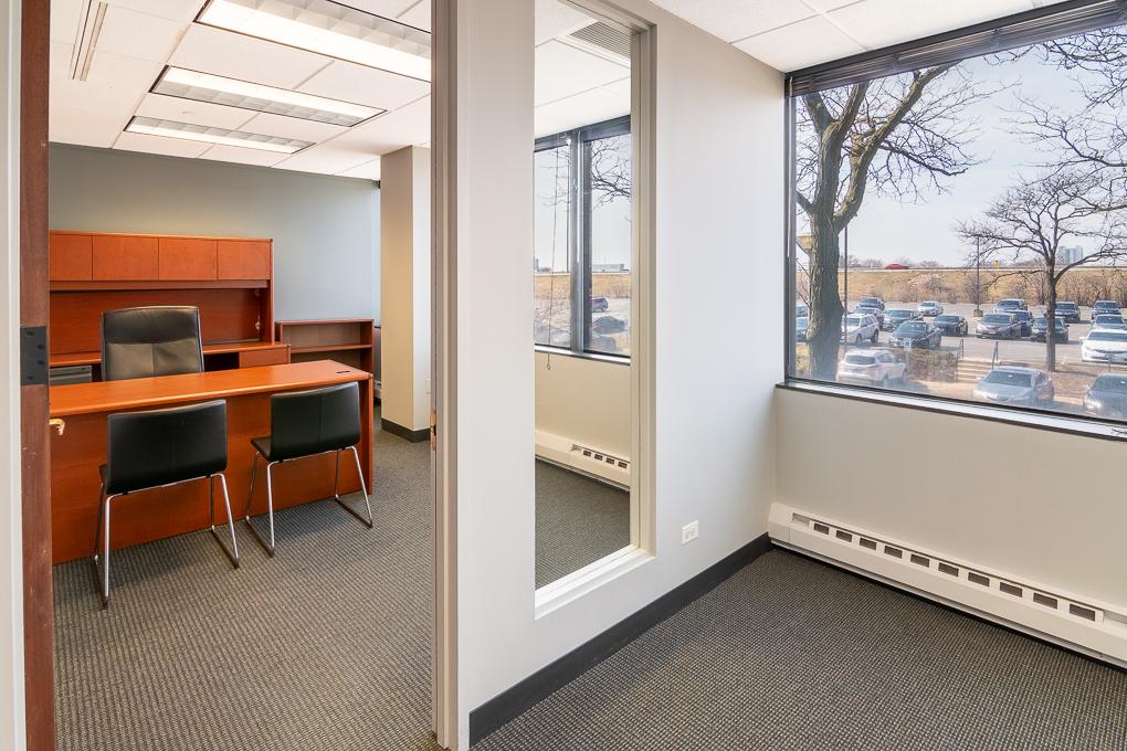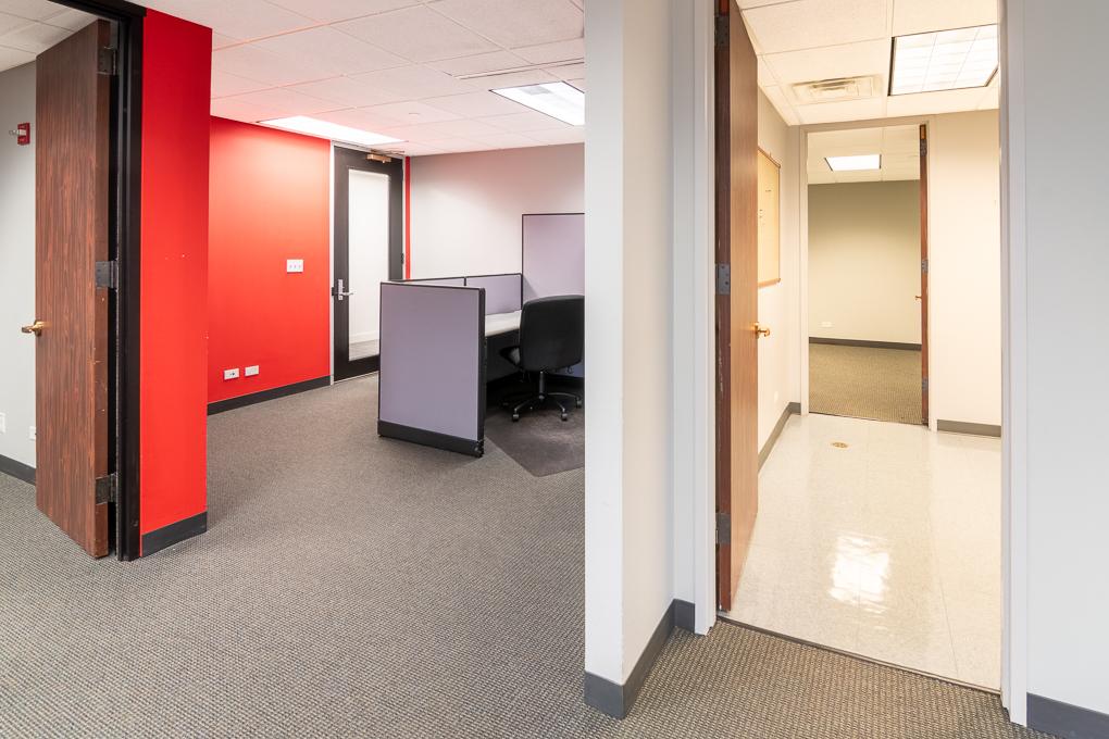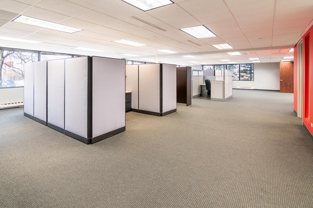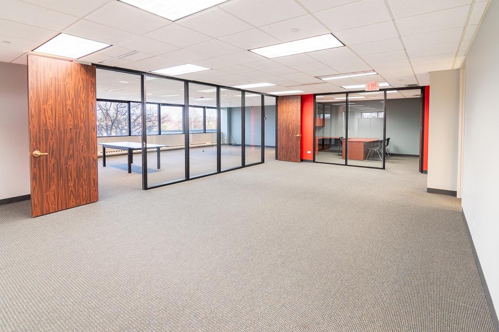 Furnished suite features 2 entrances (can be divided), reception area, small and large conference rooms, 1 windowline office, 5 interior offices, and open work area.